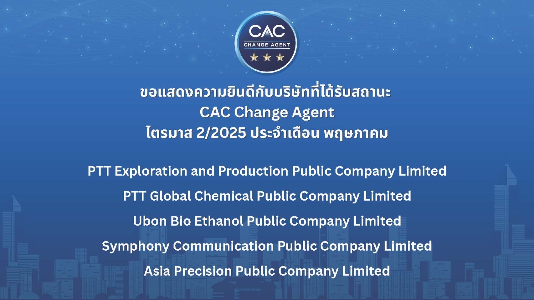บริษัท เอเซีย พรีซิชั่น จำกัด (มหาชน) (APCS) มีความภาคภูมิใจที่ได้รับรางวัล CAC Change Agent Award 2025 จาก สมาคมส่งเสริมสถาบันกรรมการบริษัทไทย (IOD) ในฐานะเลขานุการของคณะกรรมการแนวร่วมต่อต้านคอร์รัปชันของภาคเอกชนไทย (CAC)